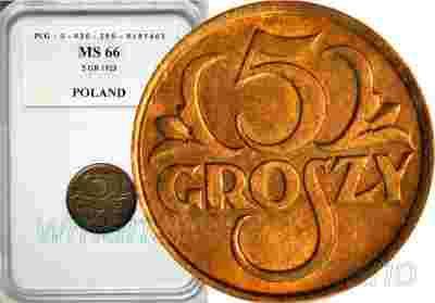 5 gr 1923 mosiądz, st 1-, PCG MS66