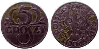 5 groszy 1936 - tęczowa patyna