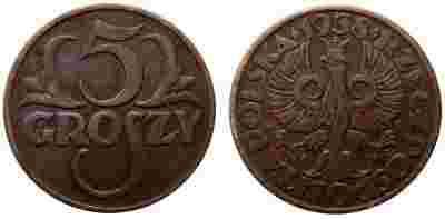 5 groszy 1938 - połysk menniczy