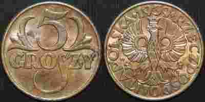 5 groszy 1939 rok - okołomenniczy egzemplarz