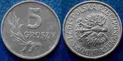 5 GROSZY, 1971, MENNICZA RZADKA SKRĘTKA