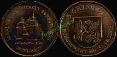 Przedmiotem aukcji są żetony o nominale 5 Gryfinów. Żetony te były w obiegu i funkcjonowały jako środek płatniczy w sezonie wiosenno - letnim roku 2008 na terenie gminy Tomaszów Lubelski. - data emisji : 2008 - średnica : 22 mm - metal : miedzionikiel - nakład : 40 000 sztuk - producent : Mennica Polska - projektant : T. Tchórzewski , R. Kotowicz Kolekcjonowanie monet zastępczych staje się coraz bardziej popularne. Liczne emisje, małe nakłady oraz ciekawa stylistyka sprawiają, że monety zastępcze są wspaniała alternatywą dla monet emitowanych przez NBP. Są one również idealną inwestycją. Może to być już ostatnia okazja kupienia tych żetonów w niskiej cenie ! Ich cena z dnia na dzień szybko rośnie. Wszystkie Gryfiny są w menniczym stanie zachowania. Wyciągnięte wprost z worka menniczego. UWAGA ! Do każdej zakupionej sztuki dodaje folder emisyjny GRATIS ! Zapraszam na pozostałe moje aukcje, na których oferuję szeroki asortyment monet zastępczych. Warto mieć ten ciekawy i rzadki walor w swojej kolekcji. POLECAM.