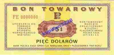 5 $ - Kopia bonu Pewex z 1969 roku