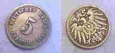 5 PFENNIG 1895 F CESARSTWO NIEMIECKIE 1891 -1918