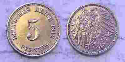 5 PFENNIG 1912 A CESARSTWO NIEMIECKIE 1891 -1918