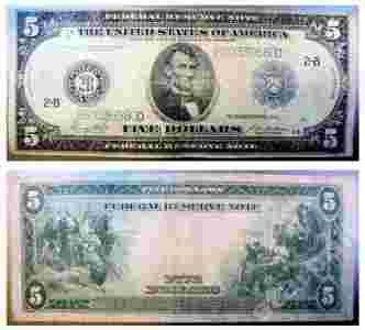 $5 USA DOLLARS LARGE SIZE NOTE 1914