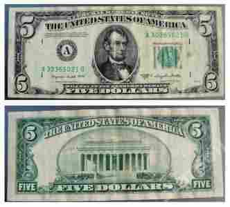 $5 USA DOLLARS LEGAL TENDER 1950