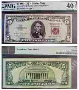 $5 USA DOLLARS LEGAL TENDER 1963 GRADING