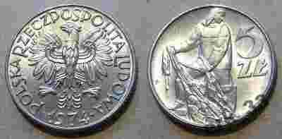 5 zł Rybak 1974 r. mennicza St 1+ extra ( A86 )