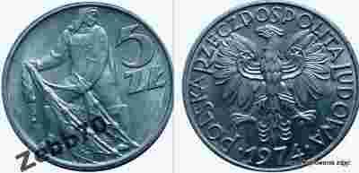5 złotych Rybak 1974,PIĘKNY