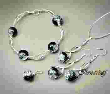 Biżuteria wykonana jest ze szkła crakle oraz elementów antyalergicznych w kolorze