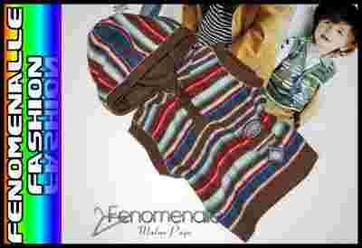 62 3-6 Sweterkowa KAMIZELKA w paseczki Kaptur _
