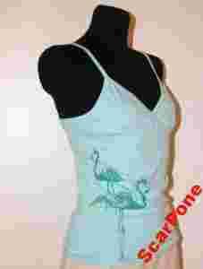 śliczną bluzę - top dla dziewczynki, marki RESERVED, niebiesko - seledynowa z nadrukiem flamingów - śliczna