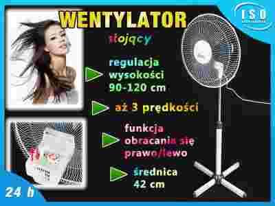 Doskonały duży wentylator na stojaku. Niezbędny w każdym domu i biurze. Szeroka podstawa (4 nóżki z antypoślizgowymi stopkami) zapewnia wiatrakowi stabilność i komfort użytkowania.