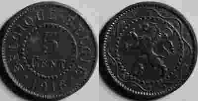 69 - Belgia , 5 Centów 1916 , piękna