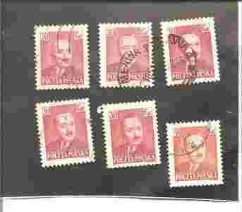 6 znaczków polskich 1950 /F537,8 bierut
