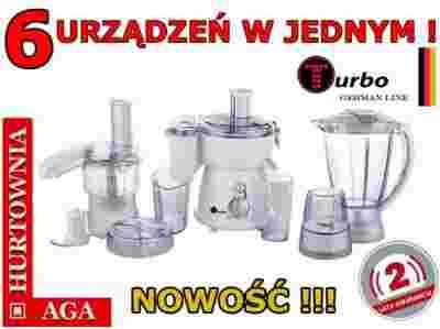 Jeśli masz już dość ręcznego krojenia warzyw na sałatkę, siekania mięsa i marzysz o pomocniku w swojej kuchni, sięgnij po urządzenie marki Turbo. Robot wieloczynnościowy z sokowirówką z łatwością wykona wszystkie męczące czynności związane z przygotowywaniem dań i napojów, Tobie pozostawiając jedynie czystą przyjemność komponowania sprawnie i szybko przygotowanych smakołyków.Akcesoria kuchenne znacznie ułatwiają pracę. Pozwalają na szybkie i staranne przygotowanie potraw, szczególnie kiedy gotujemy dla kilku osób i nie mamy wystarczająco dużo czasu na „kuchenne rewolucje”. Dzięki naszemu robotowi bez trudności i szybko poradzisz sobie ze wszystkimi warzywami i owocami, które możesz pokroić w plastry, zetrzeć, zmieszać na sałatkę, zmiksować lub – używając sokowirówki - przygotować z nich świeży i zdrowy sok.Urządzenie jest przeznaczone dla zwolenników praktycznych rozwiązań. Oszczędny design stanowi jego dodatkowy atut, dzięki czemu robot kuchenny odnajdzie się w każdej kuchni