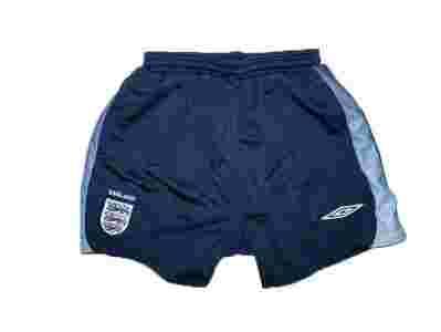 Przedmiotem auckji są spodenki sportowe, w kolorze granatowym z naszywkami Angli, marki UMBRO.