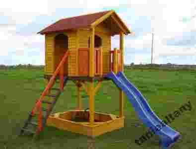 Złożony z: Zjeżdżalni, Domku, Piaskownicy
