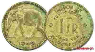 7.CONGO BELG., KOL.BELG., 1 FRANK 1949
