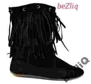#7 Mokasynki Indianki Gwiazd Botki Frędzle blk r39