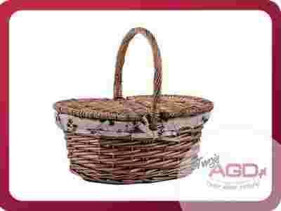 Wytrzymały i doskonale wykonany wiklinowy kosz piknikowy. Posiada on uchwyt i praktyczne dwu częściowe zamknięcie. Wewnątrz kosz wyściełany jest materiałem który łatwo wyciągnąć i wyprać. Przedmiot idealny dla każdego miłośnika pikników i spędzania czasu na świerzym powietrzu.