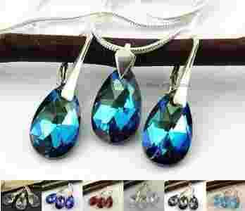 7KOLORÓW SWAROVSKI MIGDAŁ KOMPLET+ŁAŃCUSZEK SREBRO