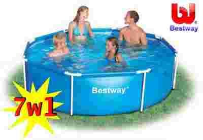 Klasyczny basen stelażowy marki Bestway. Wykonany z wytrzymałego, trójwarstwowego PCV.