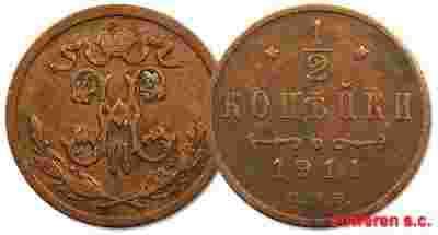 8.ab.ROSJA, MIKOŁAJ II, 1/2 KOPIEJKI 1911