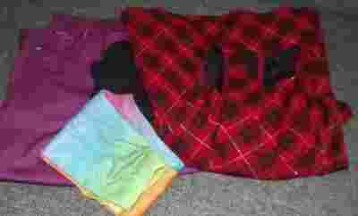 2. Spodnie, rozmiar z metki "12", w odcieniu zielonkawym. W pasie szeroka gumka, z przodu i z tyłu kieszonki, wyszywane aplikacje. 65% bawełna, 35% polyester. Również bardzo wygodne i milutkie w dotyku.