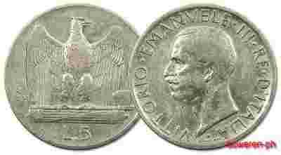 8.WLOCHY, VITT.EMANUEL III, 5 LIROW 1926 rzadsza