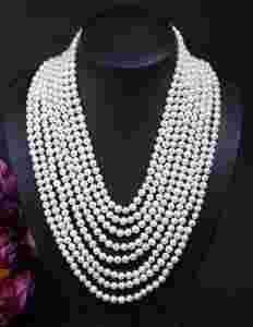 8rzedow Naszyjnik BIALE PERLY NATURALNE 9mm OKAZJA
