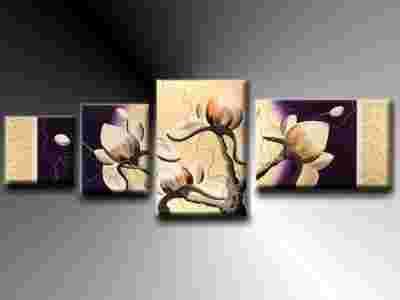 92 OBRAZ DRZEWO KWIATY MAGNOLIA FIOLET KREM 160x60