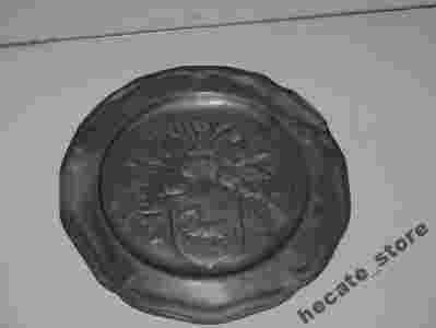 9972 STARY Cynowy talerz ozdobny z HERBEM z UK