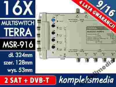 Oferowany multiswitch posiada 9 wejść oraz 16 wyjść umożliwiając dystrybucję sygnału z dwóch satelit np. Astra 19.2E + Hot-Bird 13E, telewizji naziemnej DVB-T oraz radia analogowego / cyfrowego DAB do 16 gniazd. W przypadku, gdy w instalacji wykorzystane mają być odbiorniki dwugłowicowe należy przeznaczyć na nie 2 wyjścia multiswitcha. Odlewana obudowa zapewnia wysoką skuteczność ekranowania uniemożliwiając przenikanie sygnałów zakłócających do wewnątrz urządzenia