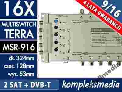 Znakomite wykonanie, stabilność parametrów, bardzo niska awaryjność, sprawiają że multiswitche TERRA polecić można każdemu. Niewątpliwą zaletą multiswitchy Terra jest zróżnicowanie poziomów wyjściowych dla różnych wyjść. Gwarantuje to uzyskanie zbliżonego poziomu sygnału na różnie oddalonych od urządzenia gniazdach. Dodatkowo konstruktor zastosował tutaj prekorekcję charakterystyki tłumienia przewodu koncentrycznego - sygnały o wyższych częstotliwościach posiadają wyższe poziomy, dzięki czemu tłumienie przewodu jest właściwie kompensowane.