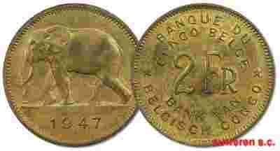 9.CONGO BELG., 2 FRANKI 1947