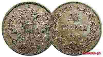 9.FINLANDIA, MIKOLAJ II, 25 PENNIA 1899