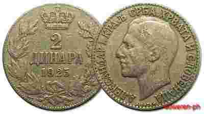 9.KROL.SERBOW, ..., ALEX.I, 2 DINARY 1925 POISSY