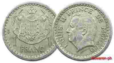 9.MONACO, LUDWIK II, 1 FRANK 1943