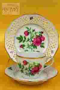Filiżanka do herbaty/kawy z podstawkiem i talerzykiem deserowym sygnowana