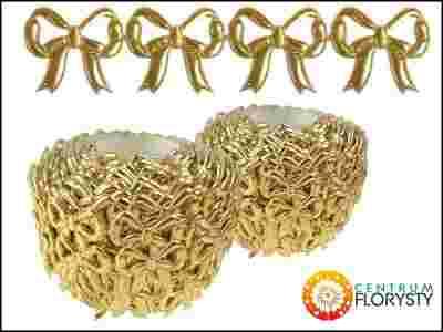 Przedmiotem aukcji jest 1m aplikacji ażurowych Kokarda. Wymiary jednej kokardki to 2,5cmx2,5cm. Na 1 metrze znajduje się około 40 sztuk kokardek. Aplikacje znakomicie sprawdzają sie przy dekoracji jajek lub bombek styropianowych. Po zalicytowaniu prosimy o podanie koloru przedmiotu w wiadomości do sprzedającego lub w oddzielnym mailu. Poniżej dostepne kolory. Waga jednego metra około 2g.