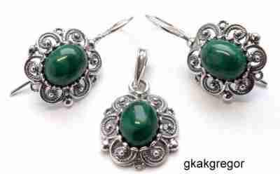 AŻUROWE KOMPLETY SREBRNE MALACHIT na prezent