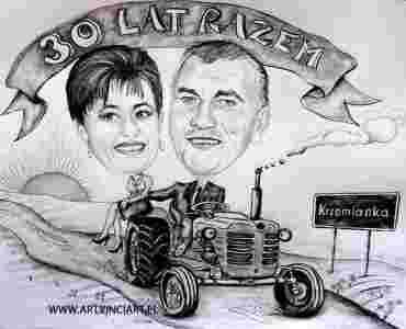 A2 / 50x40 cm Karykatura 2 osoby sylwetka+dodatki