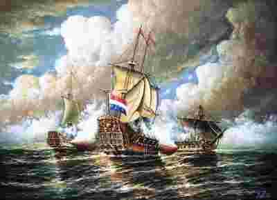 A-art1 Obraz olejny 50x70 cm Bitwa morska DUŻY!