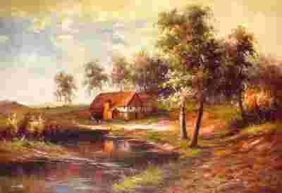 A-art1 Obraz olejny 60x90 Domek nad Rzeką