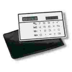 8 cyfrowy, płaski kalkulator na baterie słoneczne, w rozmiarze karty kredytowej.