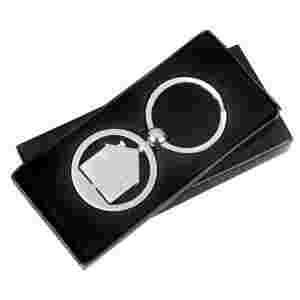 Metalowy brelok w kształcie domku.
