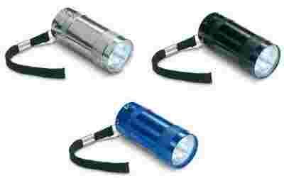 Aluminiowa mini latarka 6 LED z zawieszką na rękę.