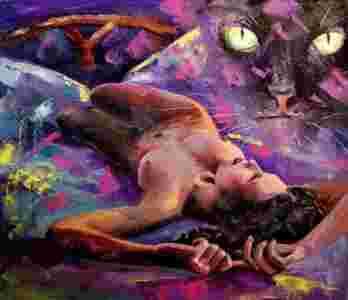 A.WAJERCZYK olej _ 60x70 __KOCIE SEKRETY__ Duży